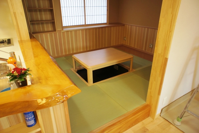 ダイニングは縁なしの畳敷きとして、掘りごたつ式としています。
