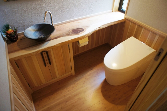 腰壁と合わせ、積極的に木仕上げを使っています。