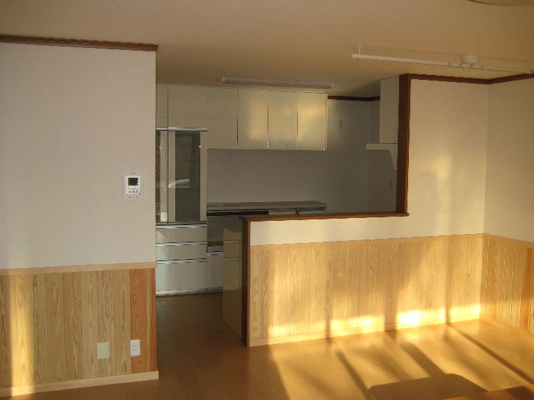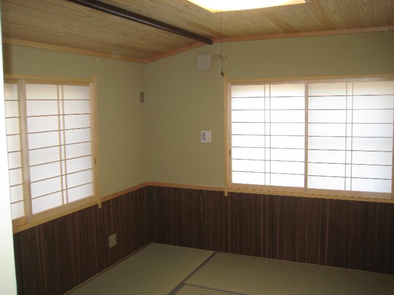 大壁(柱や梁を壁で隠すタイプ)とし、腰板は萩を貼っています。