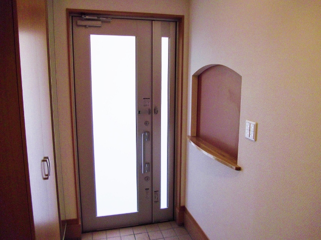 玄関にはちょっとした小物を置くスペースをアーチ状の額縁を作っています。