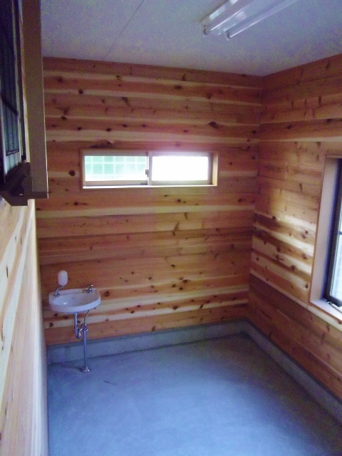オートバイ用のガレージです。手洗いを付けています。
