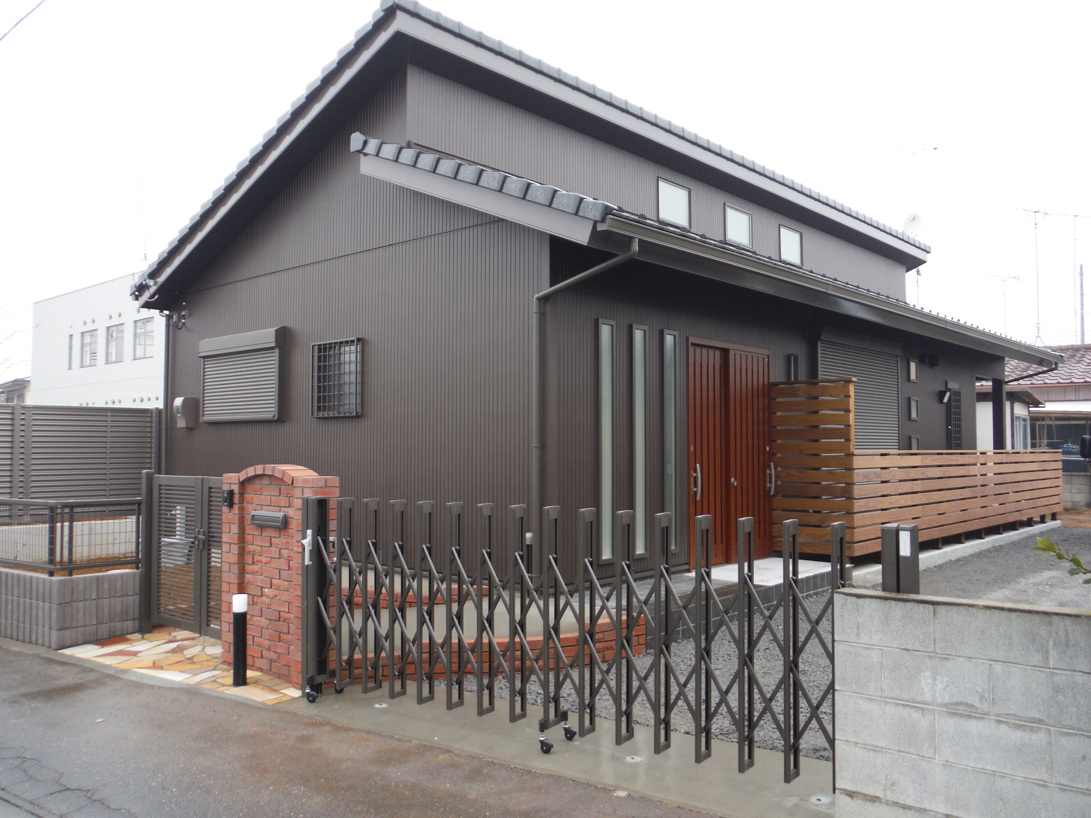 色調を玄関、ウッドデッキやポーチと合わせることで調和を取っています。